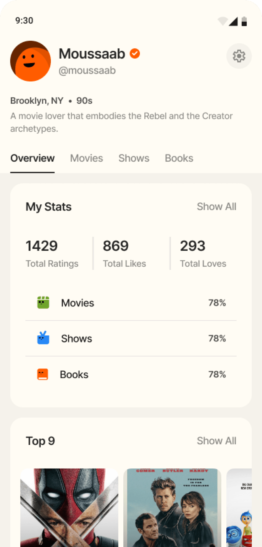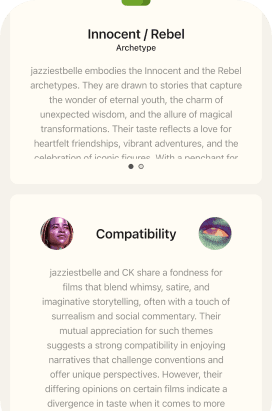 Personalized Insights on Shared Opinions Explore how your tastes align with the community. Compare notes, and see what others think of your favorite movies, shows, and books.